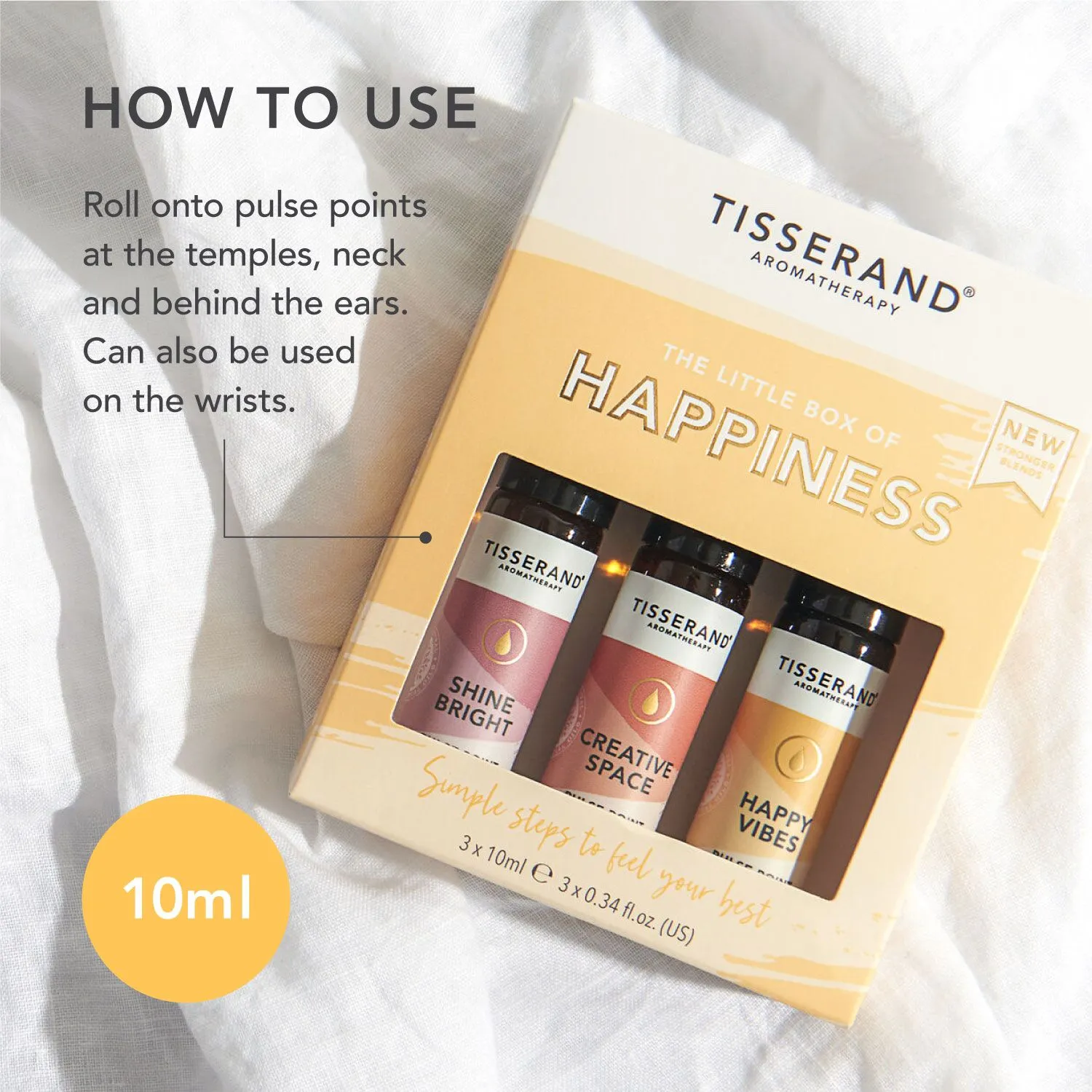 Happiness Ritual: Roll onto pulse points at the temples, neck and wrists or apply behind the ears.